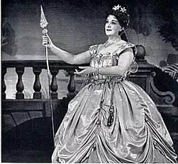 Drummond-Grant was less extrovert than some of her predecessors, and Kenneth Sandford, as a young newcomer to the company, was daunted by her "dowager austerity".[14] In general, however, she was seen as "a most likeable and kindly artist" and was something of a mother-figure to the company.[11][15] She was known to her D'Oyly Carte colleagues as "Drummie", though her husband was always particular about addressing her as "Miss Grant" when in the theatre.[16] Her D'Oyly Carte colleague, the veteran Darrell Fancourt, called her, "one of the very few people who have sung the contralto parts … not as hard, beastly women, but with a true understanding of their light and shade."[17] Of one of her last appearances, The Guardian wrote, "Lady Blanche [was] majestically portrayed last night by Ann Drummond-Grant, in whose hands tradition is always safe."[18]