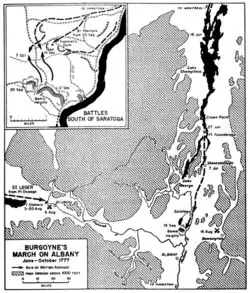 In 1777, the Bleeckers' pastoral lives were interrupted by the American Revolutionary War. British troops, under the command of General John Burgoyne, invaded Tomhannock from Canada (as part of Burgoyne's Saratoga campaign to capture the Hudson River). In response, John Bleecker joined the New York Militia, and Ann Bleecker fled southward.[3]