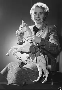 ![]() puppeteer Ann Hogarth with Muffin the Mule, ca. 1952 | |