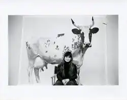 A 1974 Willis Gallery group show included "Ann Mikolowski's life-size, photoreal rendering of a cow [Stella] flanked by, of all things, miniature paintings."[22][23] John Yau notes: "Scale plays a crucial role in Mikolowski’s landscapes and portraits. The land- and waterscapes can be as large as six by seven and a half feet, while the portraits are seldom taller or wider than three inches, and fit easily in the palm of one’s hand. They are literal mementoes that one can carry anywhere."[24]