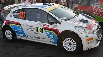 ![]() Peugeot 208 T16 of Andreucci/Andreussi before PS1-Cagliari at the 2014 Rally Italia Sardinia | |