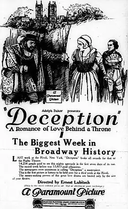 American advertisement for Anna Boleyn with its US distribution title Deception