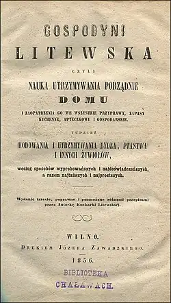 In 1848 she published "The Housekeeper of Lithuania" (Gospodyni litewska) in Vilnius.[1][2]