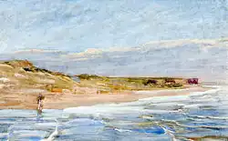 Gerresheim created mainly portraits and genre paintings during her years at the Berlin academy. She painted many landscape studies of the Baltic Sea after 1880, influenced by her stay in Hornbæk and the impact that the fisherman paintings of Peder Severin Krøyer and the seascapes of Kristian Zahrtmann had on her. In 1881 one of her paintings was shown at the Academic Art Exhibition in Berlin.[1] She participated from 1884 in the exhibitions of the Berlin Association of Women Artists and later was also a member of the Munich club for original etching. Gerresheim made primarily works with motifs of the Baltic coast during her time in Ahrenshoop. She was still active there after 1918 when many artists left the village.