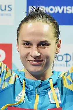 Competing as a pair with Mariya Voloshchenko, they finished seventh with in the synchronized 3 metre springboard event of the 2008 Olympic Games, and she also finished in 26th in the 3 metre springboard event.[2] At the 2012 Summer Olympics, she competed in the same events, finishing in sixth in the synchronised 3 metre springboard event with Olena Fedorova and in 21st in the individual event.[2] She is also a European champion (3m springboard at the 2017 European Championships)[3] and multiple medallist. She began diving at the age of 5 and made her international debut in 2007.[3] In 2019, she suffered a severe shoulder injury, missing out on six months of training time.[3]
