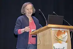 ![]() Anna Tramontano speaking at the ISMB conference in 2015. | |