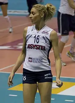 Anna Vania Mello (born 27 February 1979) is a volleyball player from Italy, who claimed the gold medal with the Women's National Team at the 2002 World Championship in Germany. There she played as a middle-blocker,[1] wearing the number #16 jersey. Vania Mello also competed at the 2000 Summer Olympics.[2]