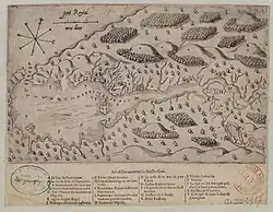 "Port Royal" originally referred to the Annapolis Basin and was named by cartographer Samuel de Champlain in 1604, writing, "we entered a harbour which is two leagues in length and one in breadth, which I have named Port Royal."[13] The French settlement on the Annapolis Basin was named "Annapolis Royal" in honour of Queen Anne following the siege of Port Royal in 1710 by Great Britain.[14]