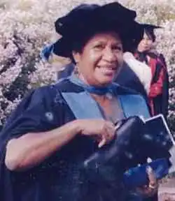 After leaving school she applied for a job with the government, thinking that she could perhaps be a primary school teacher. However Dickson-Waiko was sent to a new college for secondary school teachers in Goroka, in PNG's Eastern Highlands Province. She became involved in the college's drama club and played a number of leading roles. Again, she was the highest-ranking student on graduation in 1969. She then asked to be posted to schools in Port Moresby so that she could also follow courses at the new University of Papua New Guinea (UPNG). Her boyfriend, the playwright, actor and director, John Kaniku, made the same request. They married in 1971 and had a son. Finding it difficult to get to the university from the school where she had been posted, she began a job, writing course material for a community education programme. This enabled her to return to the university. She initially enrolled in a Bachelor of Education degree course before transferring to study history. While studying she continued to work, despite having had a second child. She graduated in 1977 with First-Class Honours. In 1978-81, accompanied by her husband, she studied for a master's in political science at the University of Mississippi, with a Fulbright Scholarship. Her studies were interrupted by the death of her first son.[1][2]
