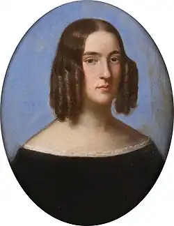 She belongs to the ladies-in-waiting depicted with Eugenie in the famous painting Empress Eugénie Surrounded by her Ladies in Waiting by Franz Xaver Winterhalter from 1855.