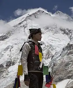 ![]() Anne de Carbuccia on location, creating a time shrine for her work "High Altitude Trash View of Everest", part of the work One Planet One Future. | |