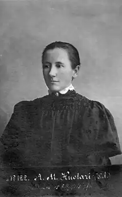 Anni Huotari (13 July 1874, Viipuri – 15 April 1943; née Torvelainen) was a Finnish politician. She was a Member of the Parliament of Finland from 1907 to 1910, from 1911 to 1918, from 1922 to 1927 and again from 1932 until her death in 1943. Anni Huotari was imprisoned from 1918 to 1919 for having sided with the Reds during the Finnish Civil War. She was married to Anton Huotari.[1]