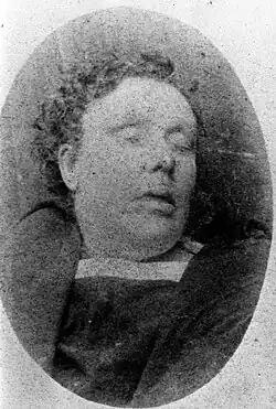 Two years later, in 1886, John Chapman resigned from his job due to his declining health and relocated to New Windsor.[14] He died of liver cirrhosis[23] and edema, on 25 December, leading to the cessation of these weekly payments.[24] Chapman learned of her husband's death through her brother-in-law.[15] Her surviving daughter, Annie Georgina (then aged 13), is believed to have either subsequently been placed in a French institution or to have joined a performing troupe which travelled with a circus in France. Census records from 1891 reveal both of Chapman's surviving children lived with their grandmother in Knightsbridge.[17]