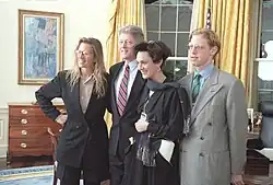Leibovitz had a close relationship with writer and essayist Susan Sontag from 1989 until Sontag's death in 2004. During Sontag's lifetime, neither woman publicly disclosed whether the relationship was a platonic friendship or romantic. In 2006, Newsweek magazine made reference to Leibovitz's decade-plus relationship with Sontag, stating, "The two first met in the late '80s, when Leibovitz photographed her for a book jacket. They never lived together, though they each had an apartment within view of the other's."[58] When Leibovitz was interviewed for her autobiography A Photographer's Life: 1990–2005, she said that the book told a number of stories, and "with Susan, it was a love story."[59] While The New York Times in 2009 referred to Sontag as Leibovitz's "companion",[60] Leibovitz wrote in A Photographer's Life: "words like 'companion' and 'partner' were not in our vocabulary. We were two people who helped each other through our lives. The closest word is still 'friend'."[61] That same year, Leibovitz said the descriptor "lover" was accurate.[62] She later reiterated: "Call us 'lovers'. I like 'lovers.' You know, 'lovers' sounds romantic. I mean, I want to be perfectly clear. I love Susan."[57]