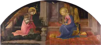 The Annunciation is a tempera on panel painting by the Italian Renaissance master Filippo Lippi, dating to c. 1449–1459, in the collection of the National Gallery, London. It is a pendant to Lippi's Seven Saints, also in the National Gallery. The lunettes were commissioned as part of the decoration of the Palazzo Medici in Florence, where they were likely placed above a door or a bed.[1]