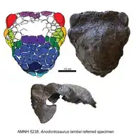 - ^ a b Vickaryous, M.K. and Russell, A.P., 2003, "A redescription of the skull of Euoplocephalus tutus (Archosauria: Ornithischia): a foundation for comparative and systematic studies of ankylosaurian dinosaurs", Zoological Journal of the Linnean Society 137: 157–186