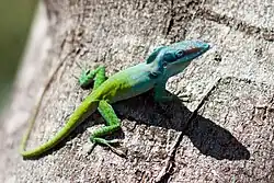 The Anolis carolinensis series is a proposed clade or subgroup of closely related mid-sized trunk crown anoles (US: /əˈnoʊ.liz/ ⓘ) within the genus Anolis. It was created by Nicholson et al. in 2012 and defined as containing 13 species, a few examples are listed below.[1]