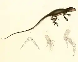 - ^ a b c d Anolis fuscoauratus at the Reptarium.cz Reptile Database. Accessed 11 September 2021.