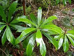 Anopterus glandulosus, commonly known as native laurel or Tasmanian laurel, is a species of shrub or small tree in the family Escalloniaceae. Endemic to south and southwestern Tasmania, A. glandulosus is widespread in the moist understoreys of Tasmanian temperate rainforests and wet sclerophyll forests from sea level to mountainous regions below 1,200 metres (3,937 ft) above sea level.[2][3]