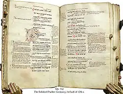 Anselm's greatest work, an interlinear and marginal gloss on the 'Scriptures', the Glossa ordinaria, now attributed to him and his followers,[2] was one of the great intellectual achievements of the Middle Ages. It has been frequently reprinted.[1] The significance of the gloss, which was most likely assembled after Anselm's death by his students, such as Gilbert de la Porrée, and based on Anselm's teaching, is that it marked a new way of learning — it represented the birth of efforts to present discrete patristic and earlier medieval interpretations of individual verses of Scripture in a readily accessible, easily referenced way. This theme was subsequently adopted and extended by the likes of Hugh of St. Victor, Peter Lombard and later Thomas Aquinas, who gave us 'handbooks' for what we would now call theology.