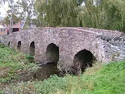 The Rothley Brook flows through the village on its way to the River Soar, and there are two ancient bridges (the Packhorse Bridge and King William's Bridge) and an old water mill. The packhorse bridge is on the route of the original road from Leicester. King William's Bridge is so named because when King William III planned to visit the Grey family at Bradgate in 1696, the existing crossings of the Rothley Brook were found to be too narrow for the Royal coach, so a new bridge had to be constructed.[6]
