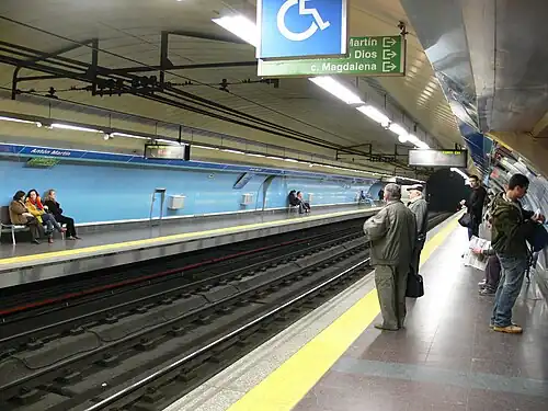 Antón Martín [anˈtom maɾˈtin] is a station on Line 1 of the Madrid Metro.[1] It is located in Fare Zone A and has been open to the public since 26 December 1921.[2] The station is named for Antón Martín (1500–1553) of the Knights Hospitaller, who founded the nearby Hospital de San Juan de Dios.[3]