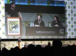 Stan Lee tweeted in February 2010 that Marvel was prepping the film and that he met with Wright for lunch to discuss the character.[77] Wright noted that there was no timetable for the film because Marvel did not consider the character to be one of their bigger, tentpole properties, so "It's more like me and Kevin Feige saying...'Let's make a good script that works, that's all about a great genre film, and that isn't necessarily relying on anything else'".[78] At the 2010 San Diego Comic-Con, Wright remarked that because his film would be an origin story and would not be released until after The Avengers (2012), the first Avengers film would not include Ant-Man, although Wright acknowledged that the character might appear in future Avengers films.[79] In January 2011, Wright stated that he had resumed writing the script for the film following the conclusion of the international promotion for Scott Pilgrim vs. the World (2010),[80] and by April he and Cornish delivered the second draft of Ant-Man to Marvel.[81] At the 2011 San Diego Comic-Con, Wright said a third draft had been handed in.[82]