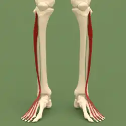 Extensor digitorum longus | Lateral condyle of tibia and superior three quarters of medial surface of fibula and interosseous membrane | Middle and distal phalanges of lateral four digits | Extends lateral four digits and dorsiflexes ankle | |