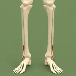 ![]() Cross-section through middle of leg. Anterior compartment is shown right to the tibia. | |