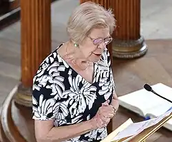 ![]() Commandant Anthea Larken in 2017 during the 100th anniversary celebration of the WRENS | |