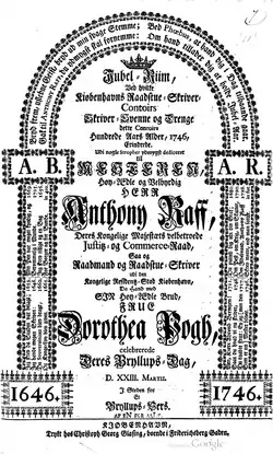 Anthoni Raff (18 July 1692 – 5 February 1758) was a Danish official, mayor of Copenhagen and director of the Danish Asiatic Company.