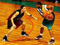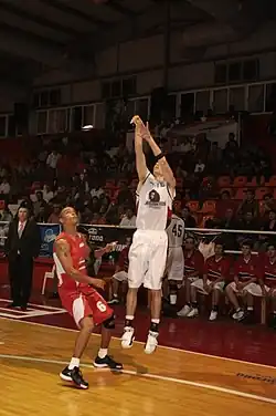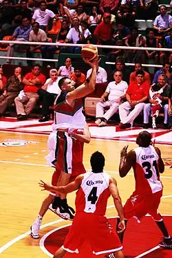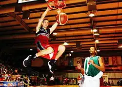 ![]() Fernandez dunking in a home game with the Campeche Bucaneros | |