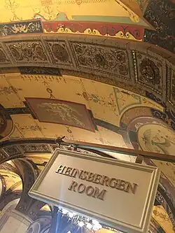 Heinsbergen's company grew to employ more than one hundred and eighty decorative painters involved with a wide variety of wall and ceiling murals for corporate offices, churches, synagogues, civic auditoriums, libraries and other ornate structures of the era. However, the Heinsbergen name is mainly linked to his theatre murals as a result of the more than seven hundred and fifty he created throughout North America during the theatre industry's period of rapid growth. High-profile work of this type includes murals for the Wiltern Theatre, the Oakland Paramount Theater, the Warner Grand Theatre in San Pedro, California, the Metro Theatre in San Francisco,[2] and the United Artists flagship theatre in downtown Los Angeles, plus the vaulted ceiling of the city's Park Plaza Hotel which can be seen in the opening sequences of the 1990 David Lynch film Wild at Heart.