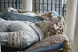 According to Collins, Anthony died aged 32 in 1610, and is buried in Whaplode Church, where he has a 10-poster tomb.[7] The inscription on the tomb reads: "Heere lieth buried Sr Anthonie Irby Knight sonne of Anthonie Irby esquire and Alice his wife daughter of Thomas Welbie esquire which Sr Anthonie tooke to wife, Elizabeth daughter of Sr John Peyton of Iselham in the countie of Cambridge knight and baronet of the noble race of the Uffordes sometimes Earls of Suffolk by whome he had issue Sr Anthonie Irby knight Edward Thomas Alice and Elizabeth who died an infant; Sr Anthonie the eldest married his first wife Fraunces daughter of Sir William Wray knight and baronet and Fraunces bis wife daughter and coheire to Sir William Drury of Halsted in Suffolk; his second Margaret daughter of Sr Richard Smith of the countie of Kent knight."