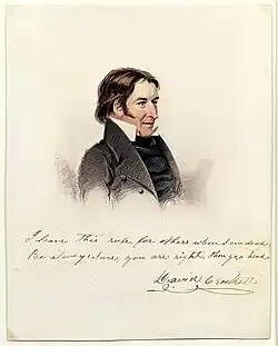 De Rose was born in New York City and began his painting career in 1821 after a year and a half of study, partially as a student of John Rubens Smith. He exhibited a number of portraits in the National Academy of Design from 1829-1833 but contracted tuberculosis in 1834 which perhaps contributed to his early demise. Today he is perhaps best known for his watercolor portrait of Davy Crockett (1834), in the collection of the New-York Historical Society, but his works have also been exhibited in recent decades at the National Academy of Design.