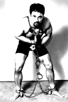 The escape artists most notable jail escapes include over a dozen documented challenges of all steel cell blocks. He has escaped from cells that have held such infamous crime figures as Baby Face Nelson and Edward Gein of "Psycho" fame.[10] The Gein jail escape presented him with the task of circumventing 6 sets of handcuffs and 6 prison doors to reach freedom.[11] His subsequent appearances in Ripley's Believe It or Not! have been translated into 17 languages worldwide.[12]