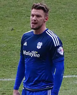 Pilkington opened his accounts for the new season, against Fulham in a 2–2 draw before scoring a brace against former club, Norwich City.[20][21] On 27 September, he was rewarded with a two-year contract extension, keeping him at Cardiff until 2019.[22] Despite finishing as one of the club's top goalscorer during the season, with 8 goals, he only managed 7 appearances following Neil Warnock's arrival in October, leading to the manager claiming he didn't know whether Pilkington had a future at the club.[23]