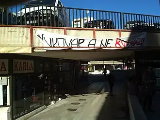 ![]() A banner that says "Vukovar, not Вуковар" (Vukovar a ne Вуковар) in Serbo-Croatian. | |