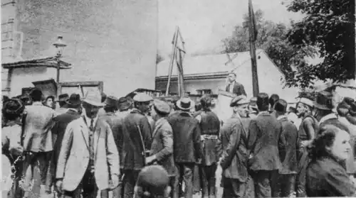 On 29 June 1914, more aggressive demonstrations began at around 8 o'clock in the morning and quickly assumed the characteristics of a pogrom.[14] Large groups of Muslims and Croats gathered on the streets of Sarajevo, shouted, sang and carried black-draped Austrian flags and pictures of the Austrian emperor and the late archduke. Local political leaders held speeches to these crowds. Josip Vancaš was one of those who gave a speech before violence had erupted.[15] His exact role in the events is unknown, but some of the political leaders certainly played an important role in bringing crowds together and directing them against shops and houses belonging to Serbs.[15] Political leaders disappeared after their speeches, and many fast-moving smaller groups of Croats and Muslims began attacking all property belonging to Sarajevo Serbs that they could reach.[19] They first attacked one Serb school and then shops and other institutions and private houses owned by Serbs.[14] A bank owned by a Serb was sacked while goods taken from shops and houses of Serbs were spread on the sidewalks and streets.[2]