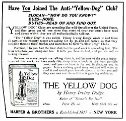The Anti-Yellow Dog Clubs (also referred to as The Yellow Dog Clubbers Club)[1] were American anti-seditionist clubs during World War I inspired by Henry Irving Dodge's story "The Yellow Dog",[2] which first appeared in The Saturday Evening Post on March 4, 1918. Members of these clubs (largely schoolboys) wielded the story's definition ("If a man talks against the government and can't back up what he says, he's a 'yellow dog'.")[3] on their quest to confront "yellow dogs". There were thousands of these clubs across the US, and they were the target of both support[4] and scorn.[5] Total membership was in the millions.[6] The clubs were endorsed by political figures including Theodore Roosevelt. [7] They were promoted in concert with both the book edition of the story and its movie adaptation. Movie theater owners started promoting the clubs before production on the film had even started, as an advance publicity campaign.[8]