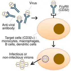 - ^ Takada A, Kawaoka Y (2003). "Antibody-dependent enhancement of viral infection: molecular mechanisms and in vivo implications". Reviews in Medical Virology. 13 (6): 387–98. doi:10.1002/rmv.405. PMID 14625886. S2CID 9755341.