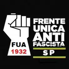 FUA was founded in São Paulo on 25 June 1933 to oppose fascism, as represented by the Brazilian Integralist Action (AIB). FUA was created on the initiative of Communist League (LC),[2] Brazilian Socialist Party (PSB), Italian anti-fascist immigrants and other leftist organizations. A meeting was held in the hall of the Civic Union 5 de Julho, in which the Anti-fascist United Front was constituted. The meeting was chaired by Francesco Frola. Attending groups included PSB, LC, Union of Graphic Workers, Socialist University Guild, 5 de Julho Civic Legion, Flag of 18, Giacomo Socialist Group Matteotti, O Homem Livre newspaper, A Rua newspaper, O Socialismo magazine, Grupo Italia Libera, São Paulo Workers Federation (FOSP), and the anarchist newspapers A Lanterna and A Plebe. Communist Party of Brazil (PCB) and entities linked to it were invited but did not attend.[3] The anarchists also did not formally participate, although they maintained contacts and aligned with the Antifascist front on some occasions.