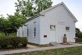 Antioch Christian Church is a historic church located at 4805 NE Antioch Road in Kansas City, Missouri. It was built in 1859, and is a one-story, frame building sheathed in clapboard siding. It has a front gable roof and measures approximately 33 feet wide and 51 feet, 6 inches, deep. It was moved to its present location in 1968.[2]: 2 The church was originally organized in 1853 by Reverend Moses E. Lard, a prominent evangelist. The 1859 building actively served the congregation until 1957. Today, this original building is a registered local historical site maintained by current church members, used for special worship services and events like weddings.[3]