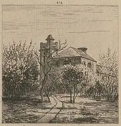 From 1857, while keeping a studio in Paris, Chintreuil and Desbrosses decided to spend much of their time in the hamlet of La Tournelle in Septeuil, on a plateau overlooking the Vaucouleurs valley. "Everything indicated that in these peaceful regions, never had a painter planted his cheeky parasol," which suited their pioneering artistic spirit. On impulse, at an auction, Desbrosses purchased three acres of land for 36 francs, and harvested the hay himself. They also purchased a garden plot and a ramshackle house, where they set about plugging the holes and adding a second floor, neglecting, "like Balzac at the Maison des Jardies," to leave room for stairs. (A structure resembling a campanile enclosed the stairway that had to be built outside the original walls, adding a picturesque effect.[38]) Looking for a teenaged assistant, "Chintreuil and Desbrosses went to a small hamlet in the vicinity of Mantes, whence they brought back a young fellow of goodwill."[39]