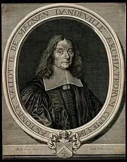 Antoine Vallot (born in Arles in 1594 or 1595; died on 9 August 1671 at the Royal Garden in Paris) was a French medical doctor. He was First Physician to King Louis XIV. Antoine Vallot had succeeded François Vautier, or Vaultier, as the king's first physician. Antoine d'Aquin succeeded him in 1672.[1]