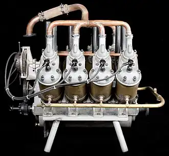 The Antoinette 8V was an early French eight-cylinder, liquid-cooled, V engine, the first series production gasoline-fueled, spark plug ignition engine of any kind produced with manifold injection. It was typically rated at 37 kW (50 hp). First produced in 1906 it was used on a number of early French aircraft, including Alberto Santos Dumont's 14 Bis and the Antoinette company's own Antoinette VII.[1]