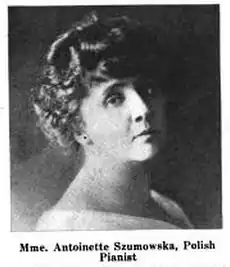 Antonina Szumowska was born February 22, 1868, in Lublin, Congress Kingdom of Poland.[1] Her father, a professor, had been a political exile in Siberia. She was educated in Warsaw. After college, she studied piano at a conservatory in Warsaw, with Rudolf Strobl and Aleksander Michałowski.[2] Szumowska moved to Paris in 1890, where she used the French form of her first name ("Antoinette"), and studied with Ignacy Jan Paderewski for five years:[3]