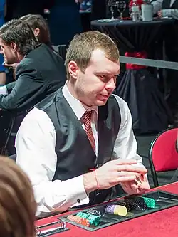 Born to a Kazakh father of Russian descent, Valeri, and a Russian mother, Tatiana, Khudobin began his hockey career in his native Kazakhstan but moved to Russia at age 13[1] and joined the Metallurg hockey school in Magnitogorsk in order to develop his game at a higher level. He was a consistent starter for Russia's national junior squads, earning a gold medal with the under-18 team at the 2004 IIHF World U18 Championships and silver medals with the junior team at the 2005 and 2006 IIHF World Junior Ice Hockey Championships. At the end of this 2003–04 hockey season, Khudobin was drafted by the Minnesota Wild at the 2004 NHL Entry Draft in the seventh round, 206th overall.[2]