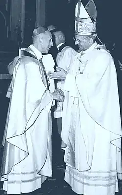 Baraniak later accompanied Cardinal Wyszyński to another "ad limina apostolorum" visit to the pope that was held on 14 May 1957 just a couple of weeks before his archiepiscopal elevation.[4] Pius XII appointed Baraniak as the newest Archbishop of Poznań on 30 May 1957 and the new archbishop was enthroned in his new episcopal see on 2 July 1957 while later receiving the Pallium on 8 September 1958 from Bolesław Filipiak.[2] He became fluent in Italian and attended all sessions of the Second Vatican Council from 1962 to 1965. In the first session of the Council he was elected as a member of the Oriental Commission and presented a proposal for the revision of the liturgical calendar while he contributed to the drafting of Dignitatis humanae. Baraniak later participated in the 1971 Synod of Bishops and attended the 1971 beatification of Maximilian Kolbe and the 1975 beatification of Maria Theresa Ledóchowska.