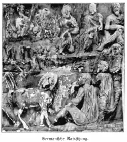 One particular episode portrayed is historically attested in Roman propaganda – the so-called "rain miracle in the territory of the Quadi", in which a god, answering a prayer from the emperor, rescues Roman troops by a terrible storm, a miracle later claimed by the Christians for the Christian God.[3]